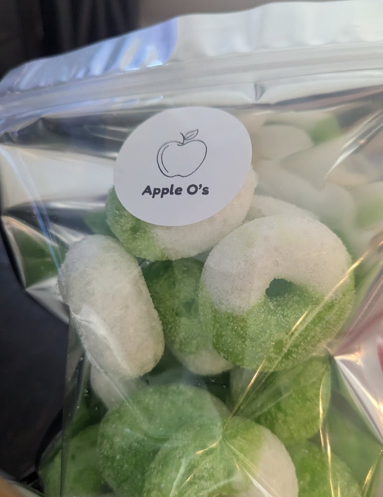 Imagine biting into a crisp, fall day. These freeze-dried Apple O's pack a punch of tart, juicy apple goodness that tingles on your tongue. The texture? Well, it's a game-changer—think of your favorite gummy candy transformed into a delightfully crunchy, melt-in-your-mouth treat. Each bite is a burst of fresh apple flavor, like a carnival ride for your taste buds. It's a flavor adventure you didn't know you needed!