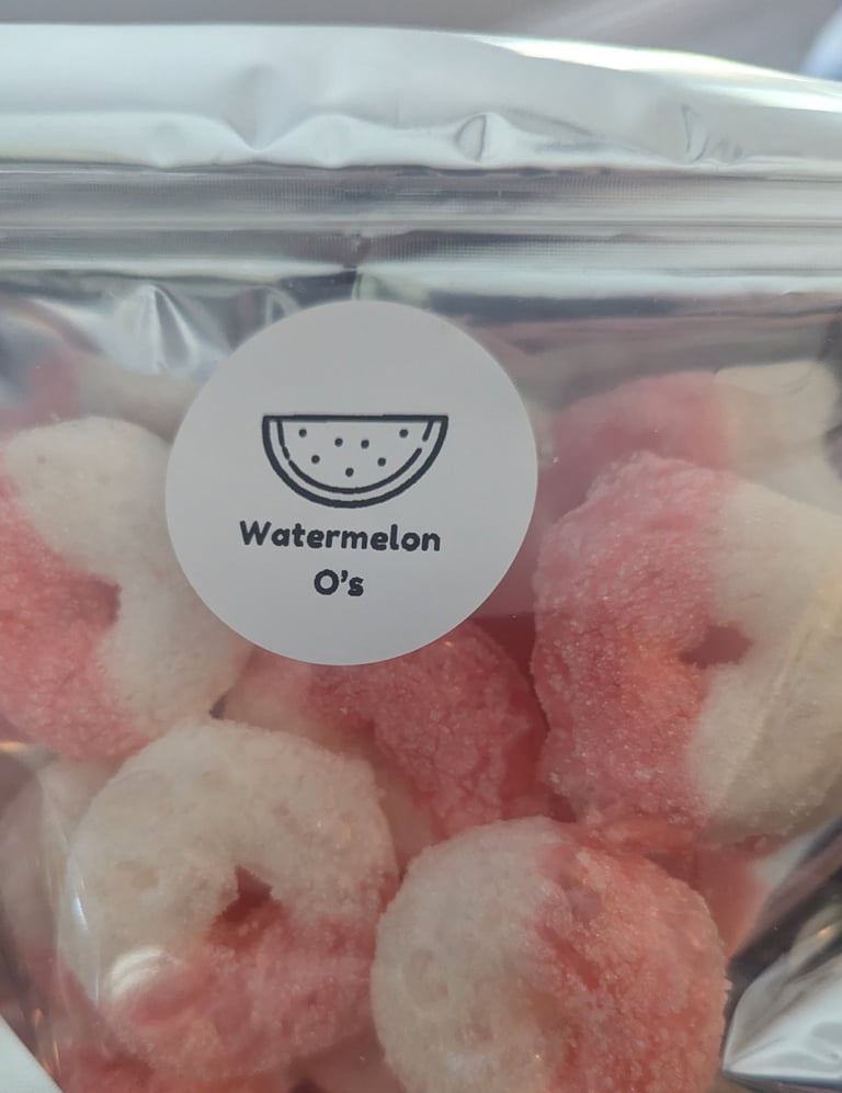 Imagine summer in your mouth! Freeze-dried Watermelon O's are like taking a crunchy bite of sunshine. The flavor bursts with a juicy, sweet watermelon taste that feels like a pool party on your tongue. The texture is totally unexpected—crispy and light, transforming your favorite chewy treat into a crispy delight. It's a carnival of flavor and texture, delivering a splash of fruity joy in every bite.🍉